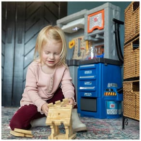 ancada de Trabalho para Crianças Step2 Deluxe: A bancada de ferramentas de brinquedo definitiva para a sala de jogos infantil, onde as crianças podem se divertir fingindo ser carpinteiros e criando seus próprios projetos. Perfeita para estimular a imaginação e o aprendizado prático. Dimensões: 103 cm (altura) x 86 cm (largura) x 38 cm (profundidade).