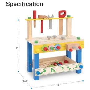 A Bancada Robud é feita de madeira maciça, garantindo uma construção robusta e durável. Sua superfície é lisa, sem rebarbas, e todos os cantos são arredondados para garantir a segurança das crianças. Fácil de montar, a bancada de madeira vem com seu próprio 'kit de montagem' em madeira, sem a necessidade de parafusos metálicos, porcas ou outras ferramentas reais. Seu filho pode tentar desmontá-la e remontá-la. Com cores vibrantes, esta bancada de madeira é altamente atrativa para crianças. Possui várias ferramentas de madeira simuladas para estimular a criatividade, como chave de fenda, serrote, martelo e parafuso. Ao brincar com esse brinquedo, as crianças usarão a imaginação, simulando diversas atividades. Outras crianças podem participar do jogo em grupo, sem brigas pelo brinquedo. Um presente incrível para ensinar crianças a usar ferramentas, adequado para qualquer ocasião como presente para meninos e meninas, garantindo diversão sem fim.