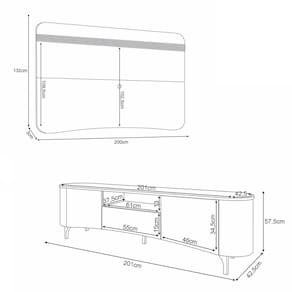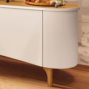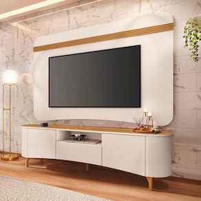 Com 201 cm de bancada e painel para TVs de até 80, oferece espaço, organização e elegância.