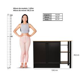 Ela conta com 2 prateleiras abertas e um espaço fechado com 2 portas, ideal para organizar utensílios, bebidas e muito mais.