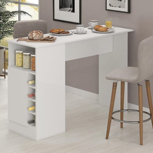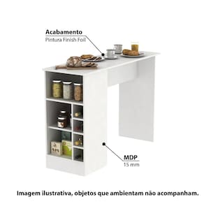 A Bancada Gourmet é extremamente versátil! Com excelente capacidade funcional de organização e de integração de espaços, sendo indicada para separar ambientes e útil em ambientes pequenos. Sua estrutura e desenho permite acomodar as pessoas sentadas, onde você poderá compor a peça com lindos e confortáveis bancos. Conta com 5 nichos externos para comportar objetos, como louças e garrafas e 1 porta com 2 nichos internos, trazendo comodidade e beleza em sua cozinha!