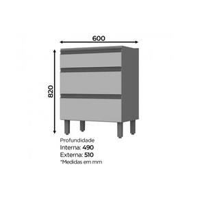 - Balcão de Cozinha Connect c/3 Gavetas s/Tampo 60x52x81cm Duna/Cristal - Henn - 1 unidades