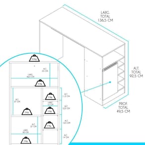Dimensoes: Altura: 92,5 cm Largura: 136,5 cm Profundidade: 49,5 cm Peso: 35 kg