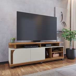A Bancada Jurerê é uma peça contemporânea e elegante, destacando-se pelos apliques ripados decorativos e pela porta de quina assimétrica usinada. Seu tampo de 25mm com detalhes suspensos adiciona sofisticação, enquanto o nicho espaçoso com duas portas de giro oferece praticidade para aparelhos e decorações. Com amplo espaço para TVs de até 75 polegadas e 06 rodízios inclusos para versatilidade, a Bancada Jurerê é a escolha perfeita para transformar seu ambiente com estilo e funcionalidade.