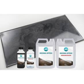 Em seguida, é hora de aplicar a Resina Epóxi de acabamento. Você deve misturar 200g da Resina Epóxi AG com 100g do Endurecedor Epóxi AG. Mais uma vez, misture bem os componentes até obter uma mistura homogênea. Essa resina será utilizada como o acabamento final.
