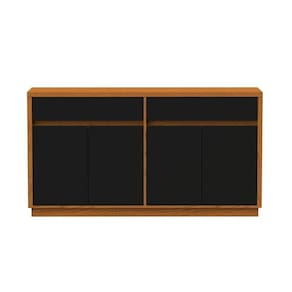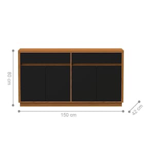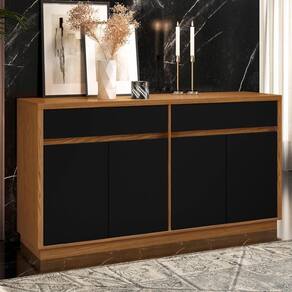 Ele conta com 4 portas, 2 prateleiras, e 2 gavetas.