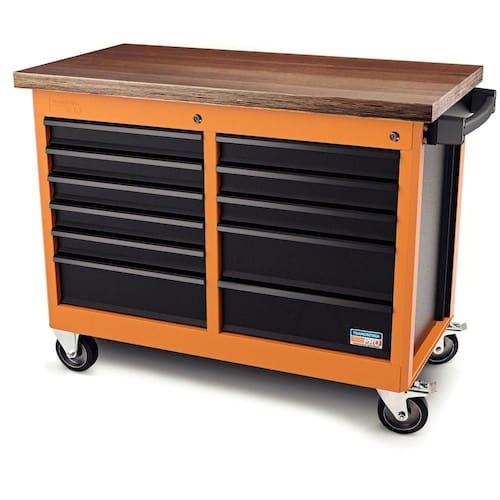 A Bancada móvel para ferramentas possui estrutura com paredes reforçadas, puxador ergonômico, rodas de borracha e sistema especial de travamento de gavetas, o que proporciona maior segurança, parado ou em movimento. Outra facilidade está nas corrediças telescópicas, que permitem a abertura de 100% das gavetas, facilitando o acesso às peças. Capacidade de carga estática: 700kg. Porque não basta ter a ferramenta certa, é preciso ter ela sempre à mão.