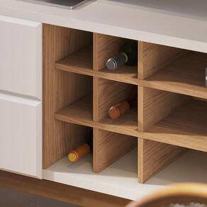 Com um visual urbano e moderno, a Bancada Noronha é multifuncional. Seu tampo de 25mm permite acomodar uma TV de até 70 polegadas ou servir de apoio para livros, adornos, aparelhos eletrônicos e demais objetos decorativos. Possui duas portas com sistema de abertura fecho toque, detalhes chanfrados e bordas com pintura PU. No nicho temos uma adega para 06 garrafas com montagem opcional, e seus pés são em madeira maciça.