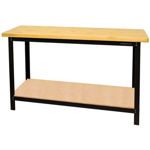 Tampo superior em pinus maciço 40 mm e inferior em MDP 15 mm de espessura. É possível personalizar a bancada, adquirindo o Tampo em aço galvanizado 1,50 m (código 91515) e/ ou 2 gavetas (código 91520), todos são acessórios e não acompanham este produto.