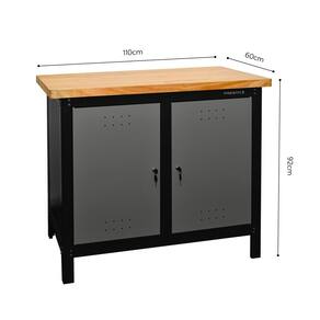 Tampo em pinus maciço 40 mm de espessura. É possível personalizar a bancada, adquirindo o Tampo em aço galvanizado 1,10 m(código 91514). Este acessório não acompanha o produto.
