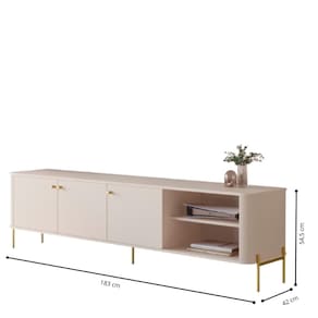 Possui pés e puxadores em metal, a base e topo em MDF 15mm, 3 porta e 1 prateleira.