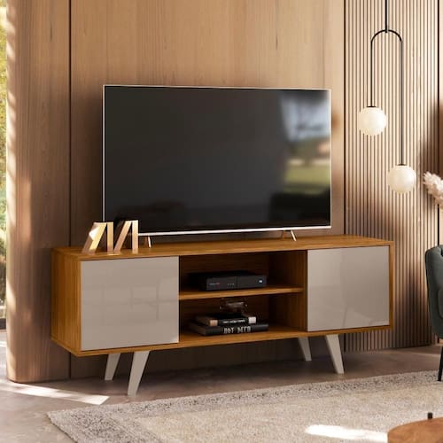 Feito para TVs até 55 polegadas, ele conta com 2 portas e seus dois nichos trazem destaque aos seus objetos decorativos!