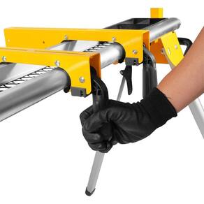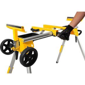 Possui estrutura tubular dobrável produzida em alumínio, tornando-a mais leve, e travas das pernas com alavanca de liberação rápida, deixando mais fácil o dobramento e desdobramento das pernas, além de sistema clique e trave na posição de operação. Conta também com rodas que facilitam a movimentação com a serra fixada e adaptadores de montagem universais, que se encaixam à maioria das serras. Possui, ainda, alças de transporte com liberação rápida acionadas por alavanca e suporte com rolos extensíveis e com batente do material, facilitando o corte.