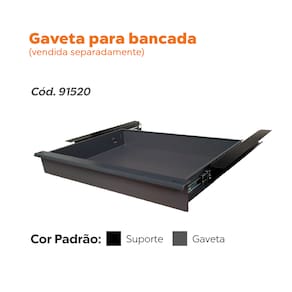 A Bancada Profissional 1,10?m Dark entrega praticidade desde a embalagem compacta, que facilita o transporte e o armazenamento. Além disso, a montagem é rápida e simples, feita com parafusos — ou seja, sem complicação. Você ainda pode fixar uma gaveta (vendida separadamente), ampliando sua organização. Assim, mantém seu espaço de trabalho sempre funcional e organizado.