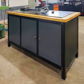 A Bancada Fechada 1,50m Dark da Presto foi desenvolvida para quem precisa de máxima robustez e organização em ambientes industriais e oficinas. Confeccionada em aço com colunas reforçadas, ela suporta trabalhos pesados com segurança e durabilidade. Seu tampo em pinus de 40 mm pode receber revestimento galvanizado (vendido separadamente), garantindo ainda mais resistência.