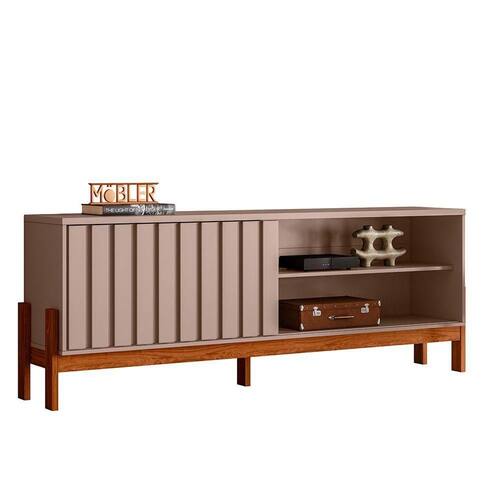 Seu tampo amplo comporta TVs de até 75 polegadas, proporcionando uma experiência completa de entretenimento e conforto visual.