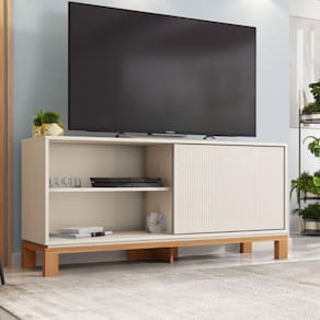 A Bancada Jace da Caemmun é a escolha perfeita para completar a sala de estar com um móvel moderno e funcional. Detalhe para a porta de correr com textura microrripada que se adapta a diversos estilos de decoração, enquanto os pés em cavalete com base elevada conferem um ar leve e contemporâneo. Ideal para televisores de até 45 polegadas se tornando a escolha perfeita para quem busca um móvel que segue as últimas tendências do mercado.