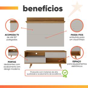 Sua sala de estar ficará muito mais bonita e aconchegante com o Conjunto Notável! Proporcionando beleza, modernidade e bom gosto ao ambiente. Ideal para TVs de até 50". Além de ser fácil de montar, é um item completo, que não só comporta sua TV, mas conta com uma prateleira para acomodar seus aparelhos eletrônicos, e objetos decorativos. A bancada retrô possui duas portas deslizantes, garantindo flexibilidade a você. Com o conjunto Notável, sua única tarefa será se aconchegar no sofá para assistir sua série favorita.