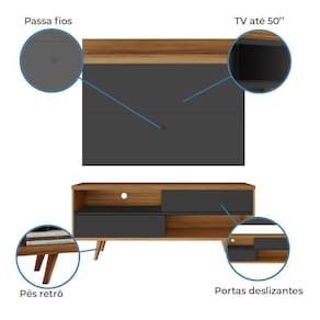 Sua sala de estar ficará muito mais bonita e aconchegante com o Conjunto Notável! Proporcionando beleza, modernidade e bom gosto ao ambiente. Ideal para tvs de até 50". Além de ser um produto fácil de montar, é um item completo, que não só comporta sua TV, mas conta com uma prateleira para acomodar seus aparelhos eletrônicos, e objetos decorativos. A bancada retrô possui duas portas deslizantes, garantindo flexibilidade a você. Com o conjunto Notável, sua única tarefa será se aconchegar no sofá para assistir sua série favorita. / MODELO: Rack com Painel para TV de até 50 Polegadas / Medidas do Combo (Painel + Rack): [ A ] = 162,5 cm - [ L ] = 135,6 cm - [ P ] = 35,8 cm / MARCA: Notável / COR: Preto / Freijó Trend / ACABAMENTO: Fosco / PINTURA: UV / SUPORTA TV: de até 50 Polegadas / PORTAS: 2 / TIPO DE PORTA: Deslizante / NICHO: 2 / PÉS: 4 / MEDIDAS PAINEL: A: 105,8 cm L: 135,3 cm P: 20,3 cm / MEDIDAS RACK: A: 56,7 cm L: 135,6 cm P: 35,8 cm / ESPAÇO PARA EQUIPAMENTOS ELETRÔNICOS: Sim / ESPELHOS: Não / VIDROS: Não / PASSA CABOS: Sim / PESO TOTAL DO PRODUTO: 75 kg / ITENS INCLUSOS: 1 Painel e 1 Rack / GARANTIA: 3 meses / Montagem não inclusa. Entregamos até a porta de entrada da casa do cliente ou até a portaria do condomínio.