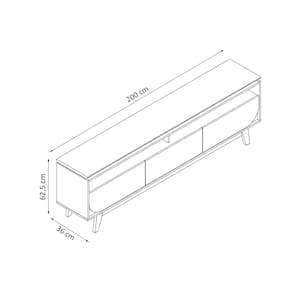 Dimensões: Altura: 62,5 cm Largura: 200 cm Profundidade: 36 cm