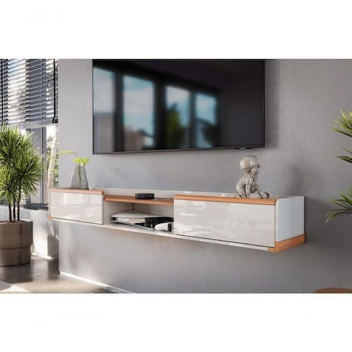 A Bancada Suspensa Atlas oferece um design contemporâneo, com a mistura de Off White Perolizado e Jequitiba, trazendo modernidade e funcionalidade ao seu ambiente.