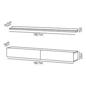 Prateleira: 196,7 x 7 x 16,5 cm.