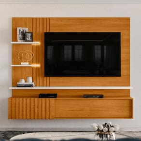 Feito para TVs até 55 polegadas, ele conta com 2 portas deslizantes e suas prateleiras de vidro trazem destaque aos seus objetos decorativos!