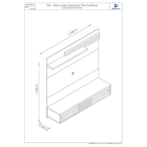 Espaço para TV: Largura (mm): 1360 - Altura (mm): 900