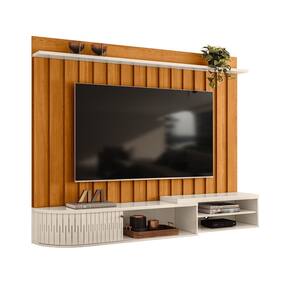 Características: Estrutura em MDP Pintura semi brilho Portas deslizantes em MDF Puxadores de Plástico Produto deve ser fixado na parede TV deve ser fixada no painel Tampo e base com detalhes curvos Espaço para TV até 75 Polegadas.