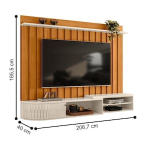 Esse Home é perfeito para o seu ambiente, contém deltalhes ripados e curvo no tampo e na base garantindo a elegância para a sua sala. Testado para TVs de 75 polegadas.
