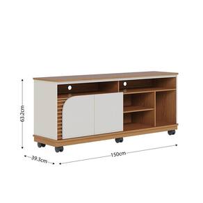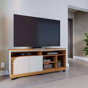 Bancada Tv De 65'' 2 Portas Ewa E Rodízio 150cm C04 - D'rossi Amendoa E Verde Pistache O Rack Bancada Ewa é a combinação perfeita de elegância e funcionalidade, ideal para transformar sua sala de estar em um ambiente moderno e aconchegante. Seu design refinado se destaca pelos apliques ripados decorativos, que adicionam um toque de sofisticação, e pela porta de quina assimétrica usinada, que confere um visual exclusivo e contemporâneo. Com um tampo robusto de 25mm e detalhes suspensos, essa bancada oferece não apenas resistência, mas também um acabamento sofisticado. O nicho amplo permite organizar eletrônicos e itens decorativos com praticidade, enquanto as duas portas de giro proporcionam espaço extra para armazenar objetos de forma discreta. Projetado para suportar TVs de até 65 polegadas, o Rack Ewa também conta com 6 rodízios embutidos, facilitando a movimentação do móvel conforme a necessidade do ambiente. Se você busca um móvel funcional, sofisticado e versátil, o Rack Bancada Ewa é a escolha ideal para elevar o estilo da sua sala de estar! Dimensões do Produto: Altura: 63,2 cm Largura: 150 cm Profundidade: 39,3 cm Altura dos Pés/Rodízios: 9 cm Peso: 33 kg Características do Produto: Material da Estrutura: MDP 25mm, 15mm e 12mm, MDF 15mm e HDF 3mm Acabamento: UV Revestimento: Pintura Escala de Brilho: Fosco Revestimento da Borda: Fitas de borda em papel Peso Suportado: 30 kg distribuídos Possui Prateleiras: Sim Quantidade de Prateleiras: 1 Prateleira Possui Portas: Sim Quantidade de Portas: 2 Portas Tipo Porta: Convencional de Giro Material da Dobradiça: Metálica Possui Gavetas: Não possui Possui Nichos: Sim Quantidade de Nichos: 5 Nichos Possui Puxador: Não possui Possui Tampo: Sim, possui Possui Pés: Sim Quantidade de Pés: 6 Rodízios Material dos Pés: Plástico Possui Vidro: Não possui Recomendado para TV: Para TVs até 65 Diferenciais: Design moderno; Porta, tampo e base com cantos curvos; Detalhe ripado. Manual de Montagem: Sim Complexidade da Montagem: Baixo Montagem: Recomendamos que seja feita por um Garantia: 90 dias contra de fabricação Instruções de Limpeza: Utilizar um pano limpo e levemente úmido Quantidade de Volumes 1 Caixa Medida das Embalagens Caixa : 11,4 cm x 41,1 cm x 156,8 cm : É feita somente até o térreo ou portaria. Não levamos em andares superiores. Confira sempre as medidas das embalagens.