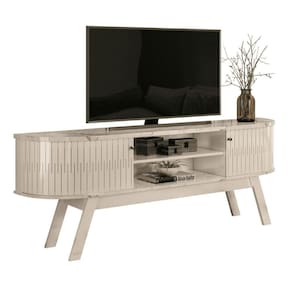 Esse Rack é perfeito para o seu ambiente, contém deltahes curvos no tampo e na base garantindo a elegância para a sua sala. Testado para TVs de 75 polegadas.