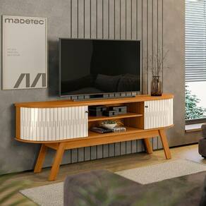Esse Rack é perfeito para o seu ambiente, contém deltahes curvos no tampo e na base garantindo a elegância para a sua sala. Testado para TVs de 75 polegadas.