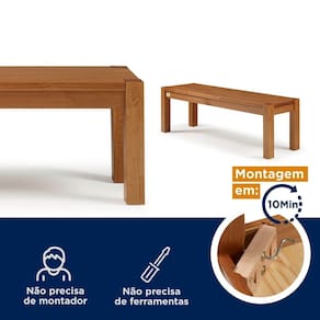 O Banco Primavera destaca-se pela sua combinação harmoniosa de beleza e funcionalidade em madeira maciça. Seu design simples e elegante confere um toque de sofisticação ao ambiente, enquanto o acabamento em verniz no assento de 30 mm realça os tons naturais da madeira, proporcionando um brilho sutil e duradouro. Ideal para complementar uma mesa de jantar ou como um assento extra em áreas de estar, este banco combina sofisticação com simplicidade, adaptando-se facilmente a diferentes estilos de decoração. O Banco Primavera cria um ambiente acolhedor e convidativo, perfeito para desfrutar de momentos especiais com entes queridos. Acabamento da Estrutura: Verniz Ambiente Principal: Sala de Jantar Complexidade da Montagem: Baixa: pode ser montado por uma pessoa sozinha Cor: Marrom Cor do Produto: Marrom Escala de Brilho: Semi-Fosco Informações Complementares: Capacidade carga 100kg por lugar. Pode haver variação de tonalidades e veios. Itens Inclusos: 1 Banco, Kit ferragens e Manual de Montagem. Linha ou Coleção: Primavera Manual de Montagem e Instalação: https://product-hub-prd.madeiramadeira.com.br/921137/documents/f2e1a7f0-8173-4c71-a97c-be639b1f0ec22109951469117199237081852.pdf Material do Assento: Madeira Maciça Material dos Pés: Madeira Maciça Material Principal: Madeira Maciça Necessita Montagem: Sim Origem do Produto: Nacional Peso: 15 kg Possui Almofada no Assento: Não Possui Apoio para Braços: Não Recomendações de Uso, Manutenção e Limpeza: Use um pano macio, levemente umedecido com água.É possível o uso detergente neutro, ou sabão neutro com água. Resistente à Chuva: Não Sistema de Montagem: Parafuso estrutural e cavilha Suporta Até (kg): 100 kg Tipo de Madeira Maciça: Pinus