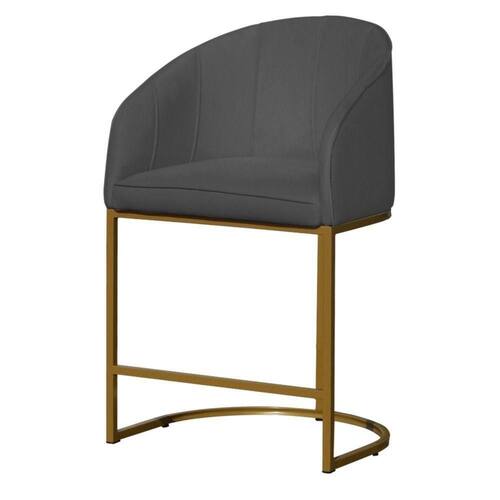 Banco Banqueta Alta Poltrona Mia Base Metal Dourada Suede cinza