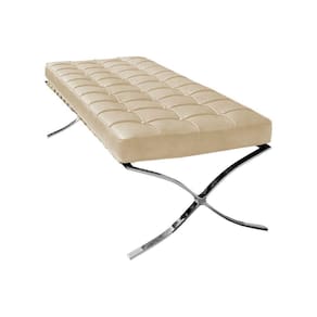 AS IMAGENS SÃO MERAMENTE ILUSTRATIVAS E PODEM SOFRER VARIAÇÕES DE COR E PEQUENOS DETALHES DE ACORDO COM O SEU MONITOR, ILUMINAÇÃO DO AMBIENTE E ATÉ MESMO A SUA PERCEPÇÃO VISUAL.Banco Barcelona Couro Natural Bege Base Inox