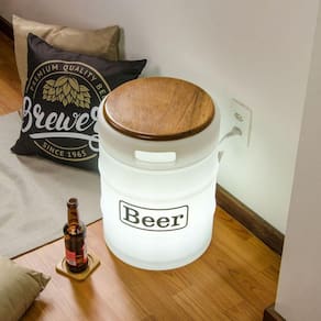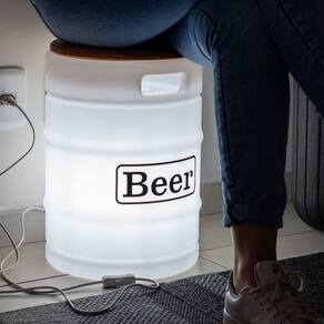 Complemente sua decoração com esse banco que imita um barril de chopp e ainda tem a opção de luminária. Ele pode ser utilizado em ambientes internos ou externos e é perfeito para iluminar o ambiente e decorar com muito estilo.