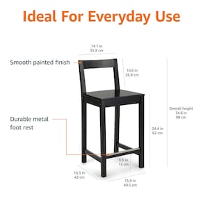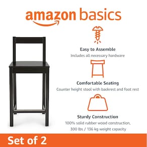 Amazon Basics Banco de bar de madeira com encosto, preto, conjunto de 2