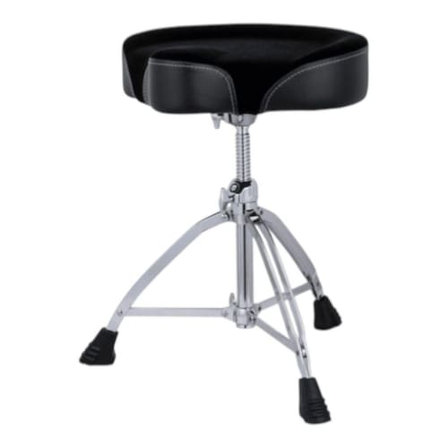 Banco de Bateria Mapex T865 Serie 800 Descrição O banco de bateria Série 800 T865 é a escolha ideal para bateristas que valorizam conforto e estabilidade durante longas sessões de prática ou performances . Com um assento acolchoado em estilo sela de 17 x 4, ele foi projetado para oferecer o máximo de conforto e suporte. Seu design ergonômico, com aberturas de perna inclinadas e bordas elevadas, proporciona uma ampla liberdade de movimento sem comprometer o equilíbrio, garantindo que você se mantenha confortável e focado em sua performance. Além disso, o banco T865 é altamente ajustável, com um fuso de aço roscado que permite regular a altura entre 19 e 25, proporcionando uma personalização perfeita para diferentes bateristas. A base do banco é equipada com pernas duplas e pés antiderrapantes extra grandes, garantindo uma estrutura estável e resistente para suportar a intensidade das apresentações. O acabamento em tecido preto não só oferece uma sensação respirável e antiderrapante, mas também acrescenta um toque de estilo ao seu setup de bateria.