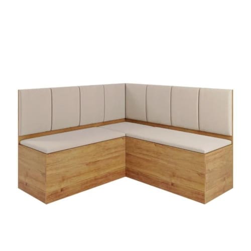 O baú integrado oferece espaço extra para organização, e sua principal vantagem é a otimização do espaço garantindo mais circulação interna na sala de jantar ou cozinha, sem abrir mão do charme de um ambiente bem decorado para as refeições.