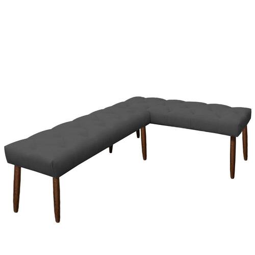 O Banco Sira no tom Grafite é para todos os tipos de decorações. Uma bela opção para você que quer montar um local com um visual moderno e estiloso! Contém um design exclusivo com formato em "L" que permite maior aproveitamento do ambiente. Seu assento contém um espaço generoso, ideal para acomodar até 4 pessoas. Foi produzido em madeira de eucalipto reflorestada, uma madeira altamente durável, seu estofamento é feito com espumas de alta densidade D-20. Contém também, um revestimento em Suede com detalhe na costura, um tecido que confere um toque macio e agradável. Sua sustentação é dada pelos pés palito castanho, extremamente resistentes e seguros. Este banco foi desenvolvido para dar mais praticidade ao seu dia a dia. Pode ser utilizado em algum cantinho na sua sala, quarto, escritório, cozinha, varanda, área gourmet, dentre outros. Uma diquinha legal é combiná-lo com mantas ou almofadas coloridas, agregando um pouco mais de personalidade ao local. Perfeito né! Adicione elegância e versatilidade em sua decoração. Garanta o seu agora mesmo!