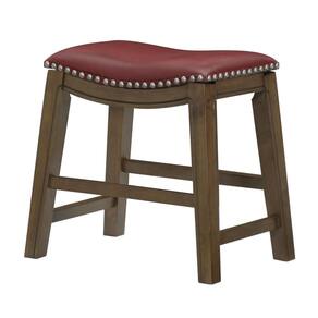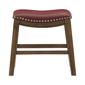 Banqueta de jantar - Couro sintético - Madeira maciça - Nailheads - Vermelho e marrom