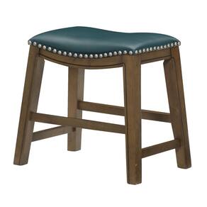 Banqueta de jantar Benjara Miel de 20 polegadas, couro sintético, madeira maciça, pregos, verde e marrom