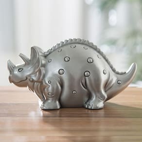 Tamanho: 19,2 x 9 x 10,5 cm Peso: 536 g Material: liga de zinco Construção robusta em liga de zinco — Construído em liga de zinco premium, este porta-moedas com tema de dinossauro é sólido e elegante, projetado para resistir ao desgaste e adicionar charme a qualquer ambiente. Design divertido e envolvente — Com uma figura divertida de dinossauro com texturas detalhadas e acabamento prateado escovado, ele desperta a imaginação das crianças e ilumina a decoração. Educacional para economizar — Perfeito para ensinar hábitos financeiros às crianças por meio da economia diária de moedas, tornando-o um presente ideal para aniversários, feriados ou qualquer comemoração. Tamanho ideal para espaços infantis — Medindo 19,2 x 9 x 10,5 cm e pesando 536 g, cabe perfeitamente em prateleiras, mesas ou cômodas sem ocupar muito espaço. Suave e seguro para crianças — Projetado com curvas seguras para crianças e um compartimento seguro para moedas, tornando-o adequado tanto para exibição quanto para uso interativo diário.