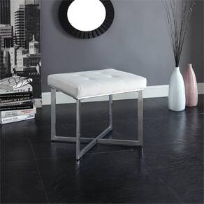 Com uma perna de trenó com base em X para maior estilo e sofisticação. Características: confortável assento estofado em couro sintético branco Impressionante cromado com base de metal com base em X Base Metálica Especificações: Dimensões do assento: 20" L x 16" P x 19" H Dimensões do produto: 20" L x 16" P x 19" H Peso do produto: 12 libras - Assento confortável estofado em couro sintético branco - Impressionante Base metálica cromada em X Base Leg - Almofada de assento tufada