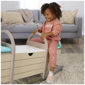2 EM 1 TEETER TOTTER Este banco surpreendentemente elegante funciona como um banco de zenamento secreto. DIVERTIDO E CONFORTÁVEL Com almofadas de assento de tecido e suporte para as costas, os pequenos vão balançar e cambalear para o conteúdo de seus corações. E ESTÁVEL A alça grande do balancim dá a eles algo para segurar e os ajuda a ficar parados. MANTENHA ARRUMADO O zenamento de carga superior facilmente acessível coloca a diversão em funcional e ajuda a manter seu espaço limpo. DESIGN MODERNO Este banco de zenamento oscilante de madeira combina com a decoração da casa. Idade 2 5 anos Marca: Não Informado