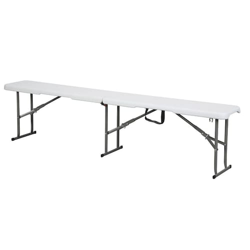 - O Banco Metal e Plástico 4 lugares Bertioga 43 x 183 cm Branco é fácil de ser guardado porque é dobrável;
