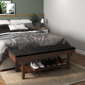 Banco Em Madeira Almofadado Com Sapateira Preto Pavia