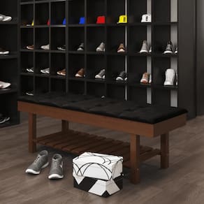 O Banco Em Madeira Almofadado Com Sapateira é ideal para quem precisa de um móvel multifuncional. A sapateira integrada e o almofadado tornam este banco uma peça versátil e prática.