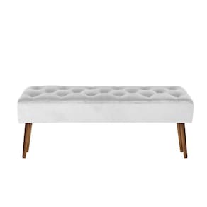 Banco Estofado Rubi 1,40m Suede Branco - Inova Decor